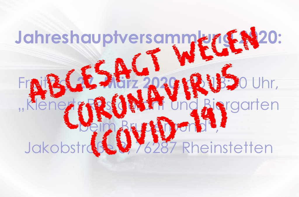 Nach reiflicher Überlegung, vielen Gesprächen und auch externer Beratung haben wir uns entschieden, die für den 27. März 2020 geplante Jahreshauptversammlung abzusagen.