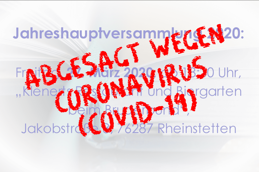 Karlsruhe, 16. März 2020 Liebe Mitglieder,sehr geehrte Damen und Herren, wie viele Organisatoren, die in den nächsten Tagen ihre Veranstaltungen und Versammlungen durchführen möchten, mussten auch […]